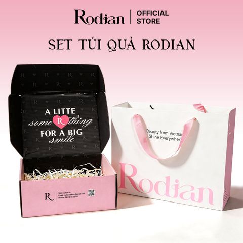 Bộ túi và hộp quà RODIAN được thiết kế đồng bộ với tone hồng pastel sang trọng, mang lại cảm giác chuyên nghiệp và tinh tế – đặc biệt phù hợp cho các chiến dịch quà tặng doanh nghiệp, event hoặc gifting cao cấp.